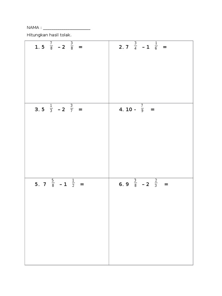 Soalan Pecahan Tolak Tahun 5 Pdf